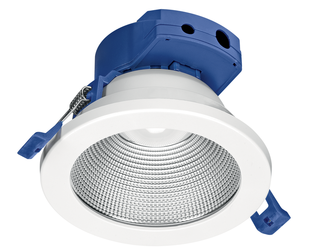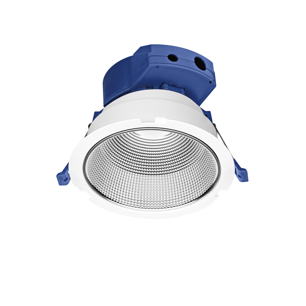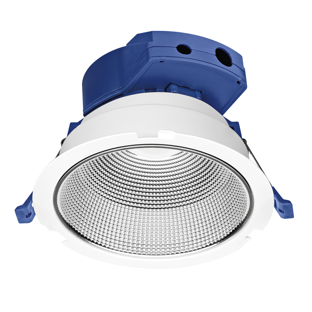 Reflector: high-quality polycarbonate with a white decorative trim ring, designed to blend seamlessly into any ceiling type.